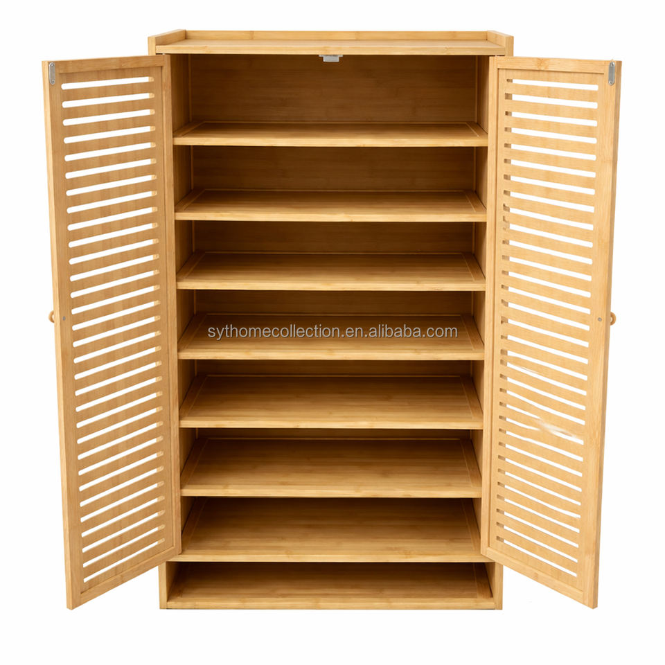 Meuble de rangement en bambou à portes à lattes Calm Order SYT pour zone d'escalier, étagère amovible, armoire à chaussures pour espace d'angle