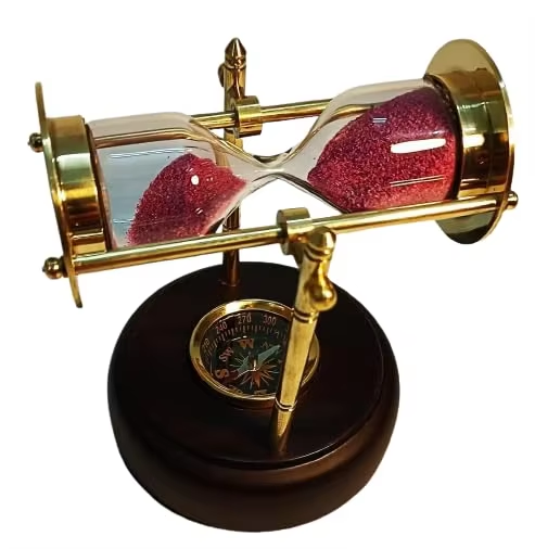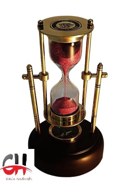 Calvin Handicrafts "Base en bois de sablier en laiton avec boussole nautique, horloge de sable suspendue 2 min et sablier sable rose