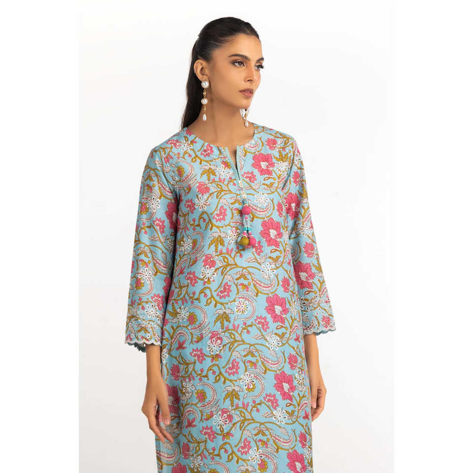 Ensemble Coordonné Imprimé en Cambric pour Femmes Brodé IPST-77424 Style Casual Tendance Trois-Quarts pour Tenues Printemps/Été XS