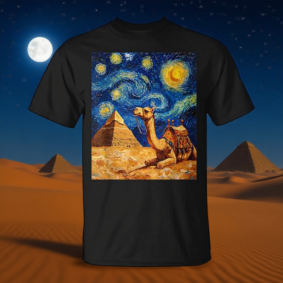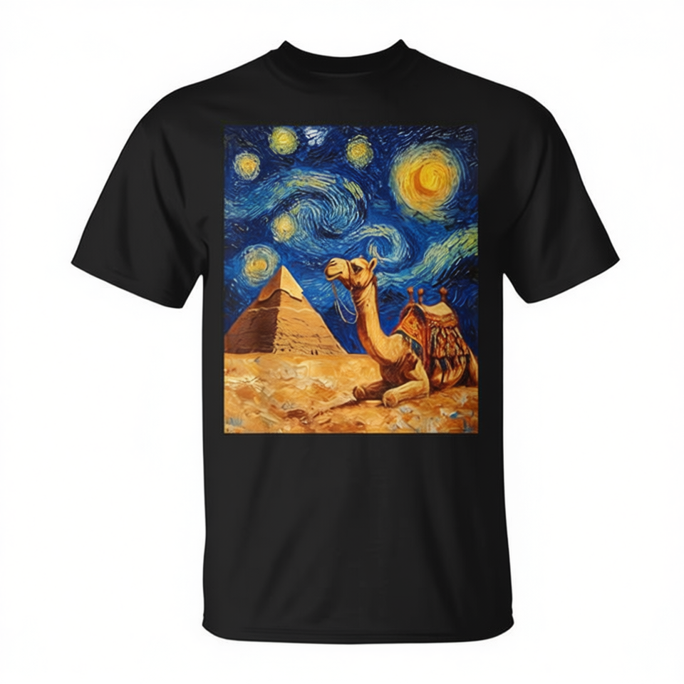 Camel Pyramid Egyptian Van Gogh Style Starry Night T-Shirt