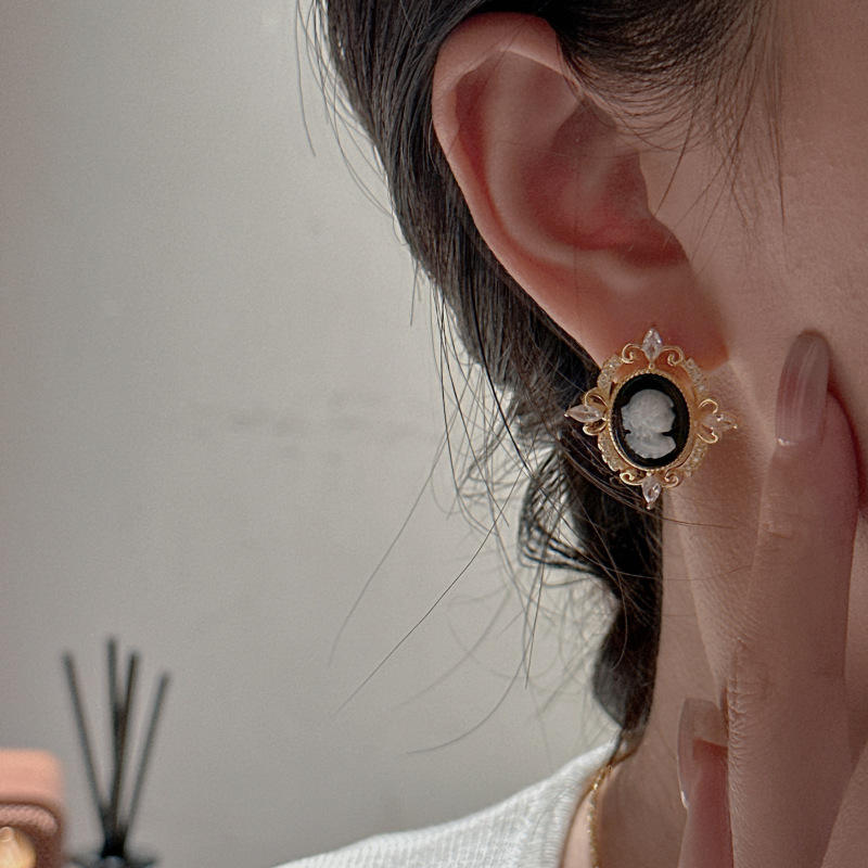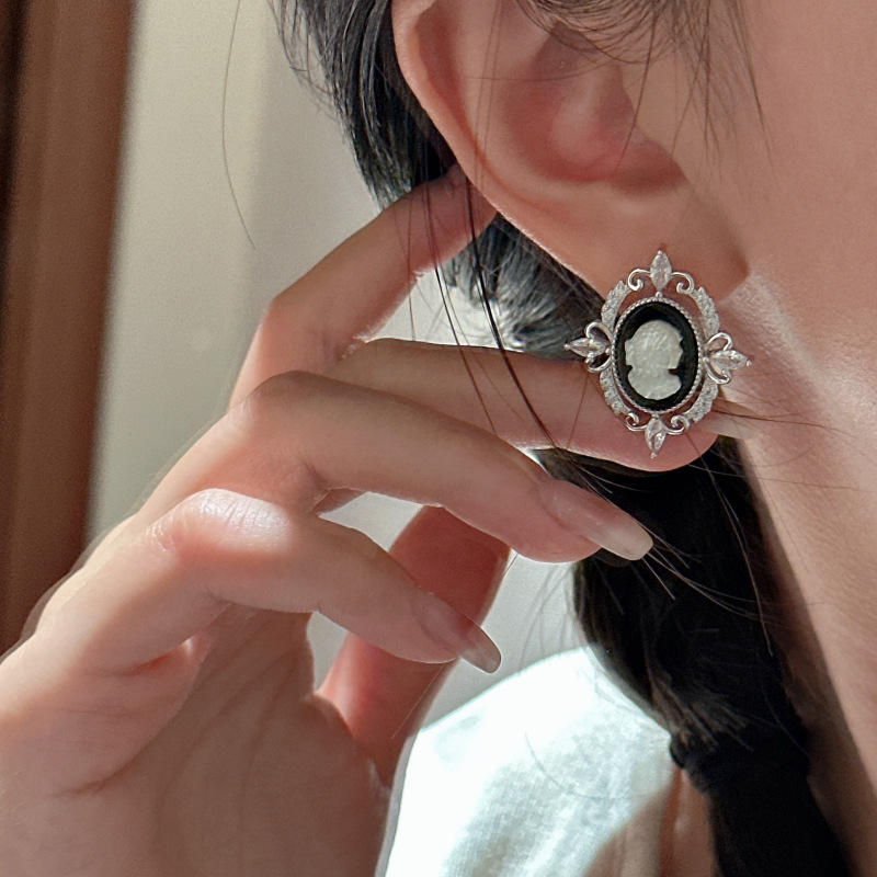 Camelot Portrait S925 Sterling Silver Earrings Vintage Light Luxury Queen with Palace Style Niche Design Crystal Jewelry