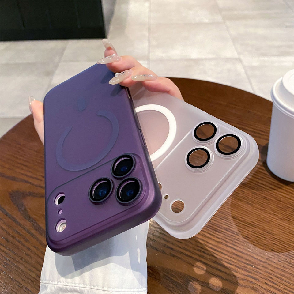 Coque de téléphone antichoc en PC mat avec protection intégrale de l'objectif de l'appareil photo, compatible avec les coques magnétiques pour iPhone 15 Pro Max, 14, 17 Air