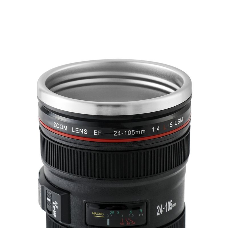 Tasse d'objectif de caméra Tasse à café en acier inoxydable en forme d'objectif de caméra Tasse de mode populaire Noir 24-105mm Tasse d'objectif de caméra de café