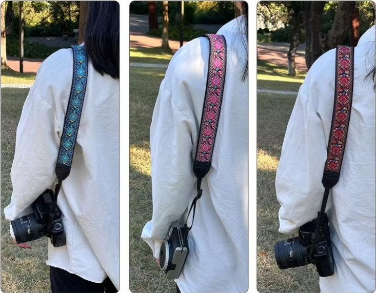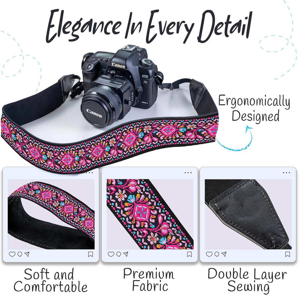 Sangles d'appareil photo pour photographes, tissage en coton brodé vintage, tissu doux rembourré, sangle à dégagement rapide, convient à tous les appareils photo