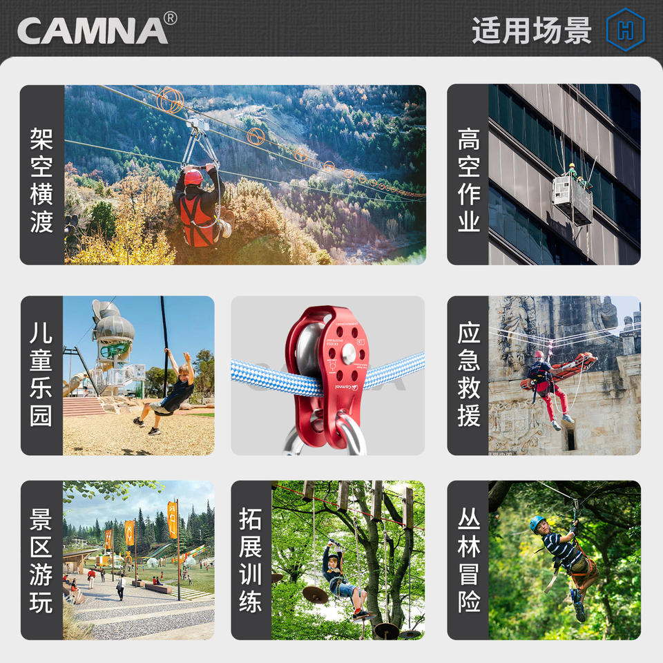 Poulie d'escalade Camnal pour corde de 8-12 mm, charge statique de 25 kN, équipement de sauvetage en montagne en plein air