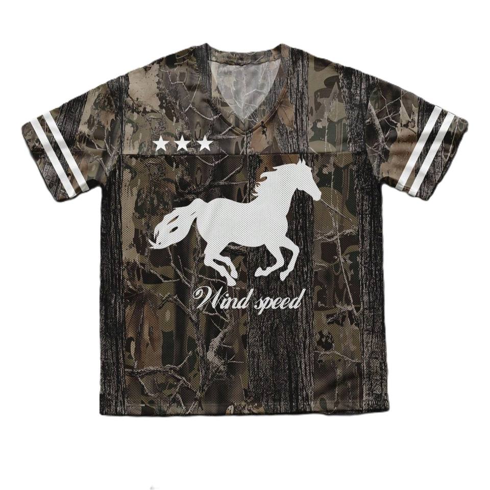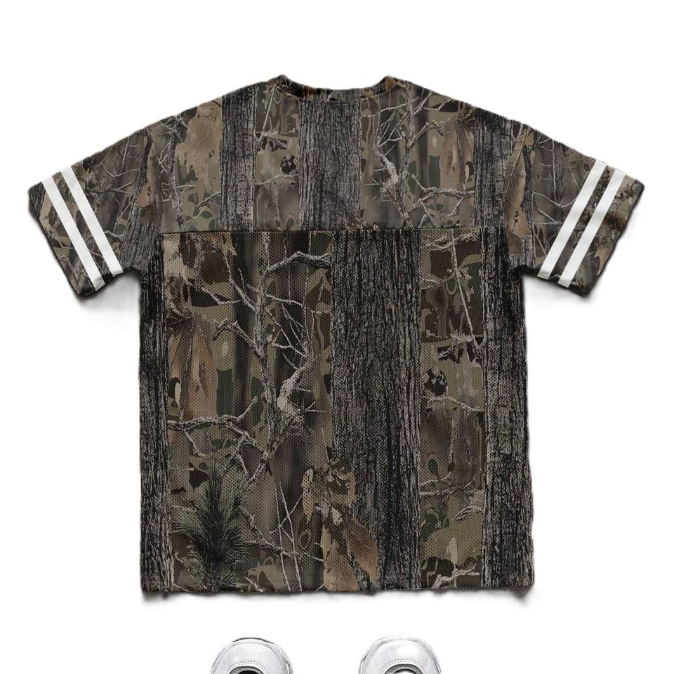 Maillot de football américain ample et oversize en maille camouflage, col en V, personnalisé, style streetwear rétro vintage, motif camouflage Real Tree