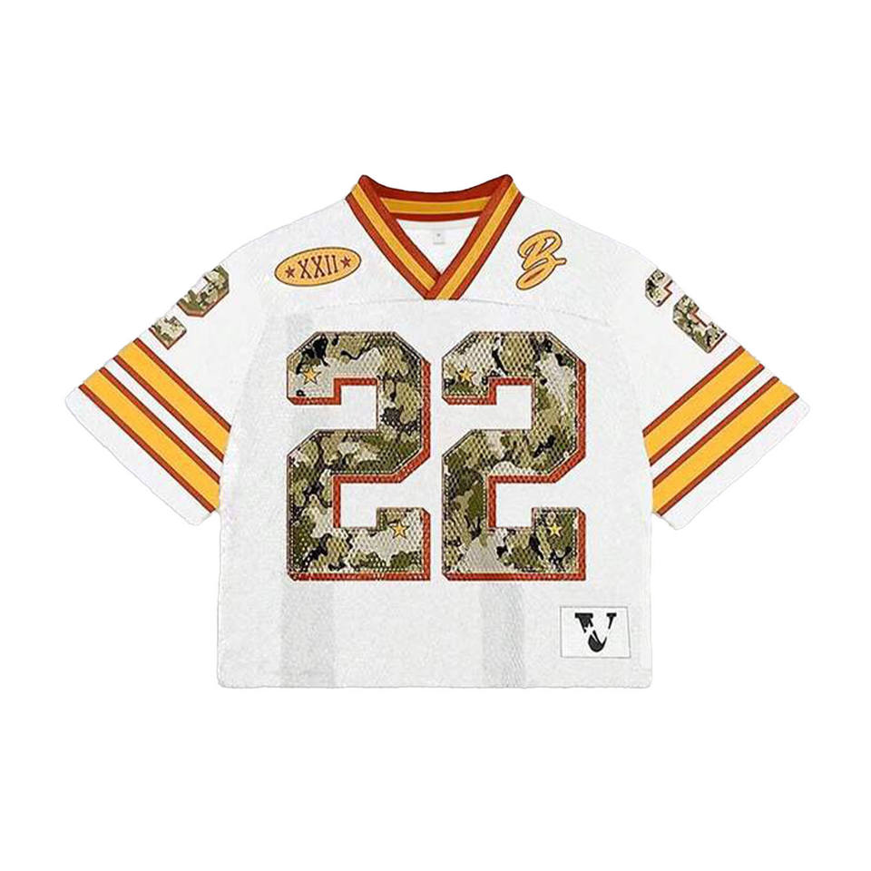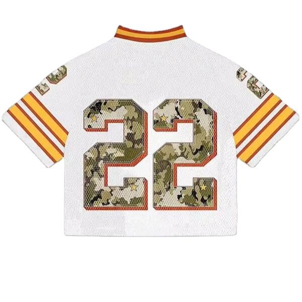 Maillot de football américain personnalisé camouflage pour homme, respirant, séchage rapide, jaune, rayures rouges, maille, col en V, manches courtes, sportif