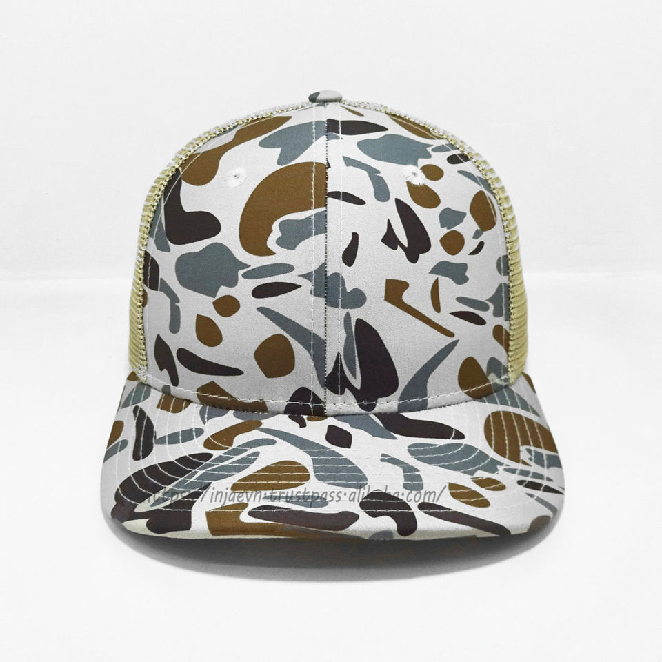Camo Trucker Chapeaux Casquettes Snapback Personnalisées Camouflage Tissé Patch Vietnam Usine Promotionnel Chapeau Sport Papa Casquette