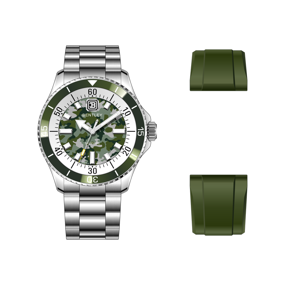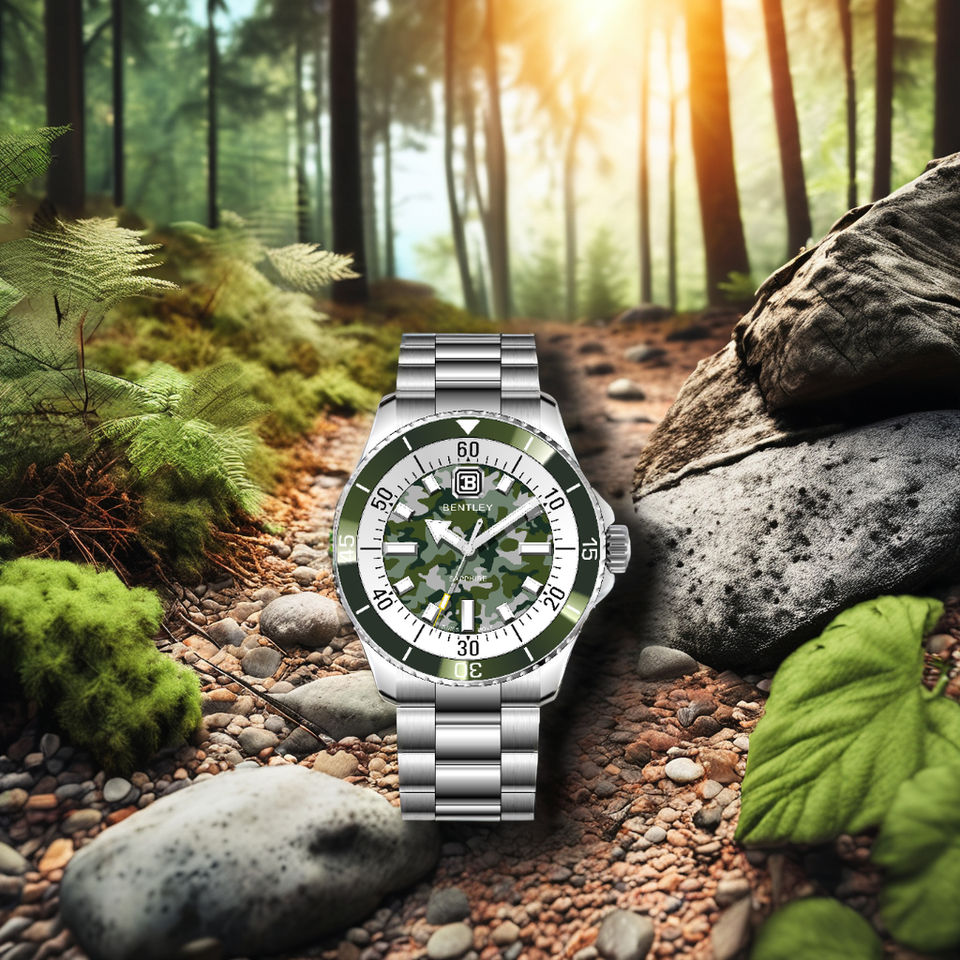 Camouflage quartz wristwatch designed for daily movement with a refined sport finish