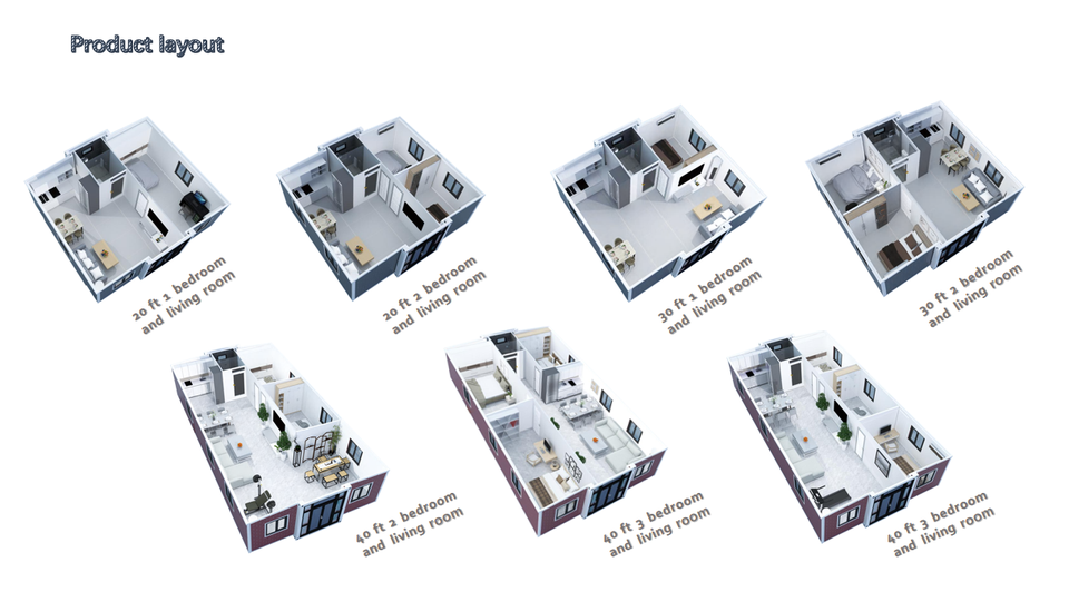 Maison de conteneur, Maison vivante de conteneur, Cuisine, Salle de bain, Bureau à la maison, Salon, ChambreApplication