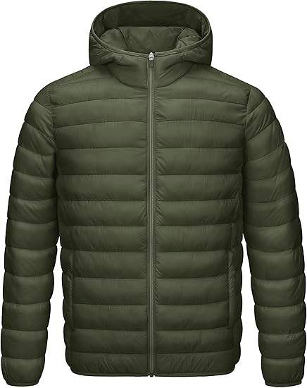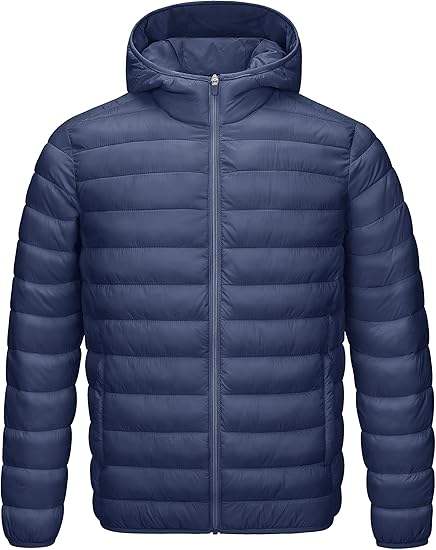 Veste matelassée légère compressible pour homme Camp avec capuche Veste d'hiver chaude et matelassée Manteau isolé pour le ski, la randonnée et les voyages