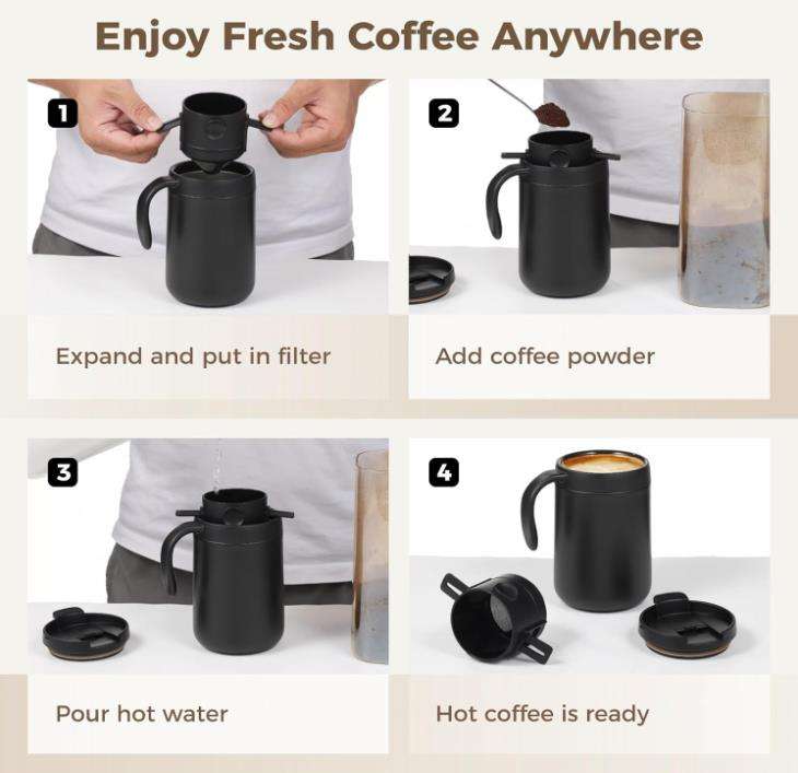 Cafetière de camping, cafetière à filtre, ensemble de cafetière de camping, comprend un filtre et une cuillère, kit de café portable pour le camping