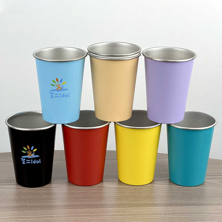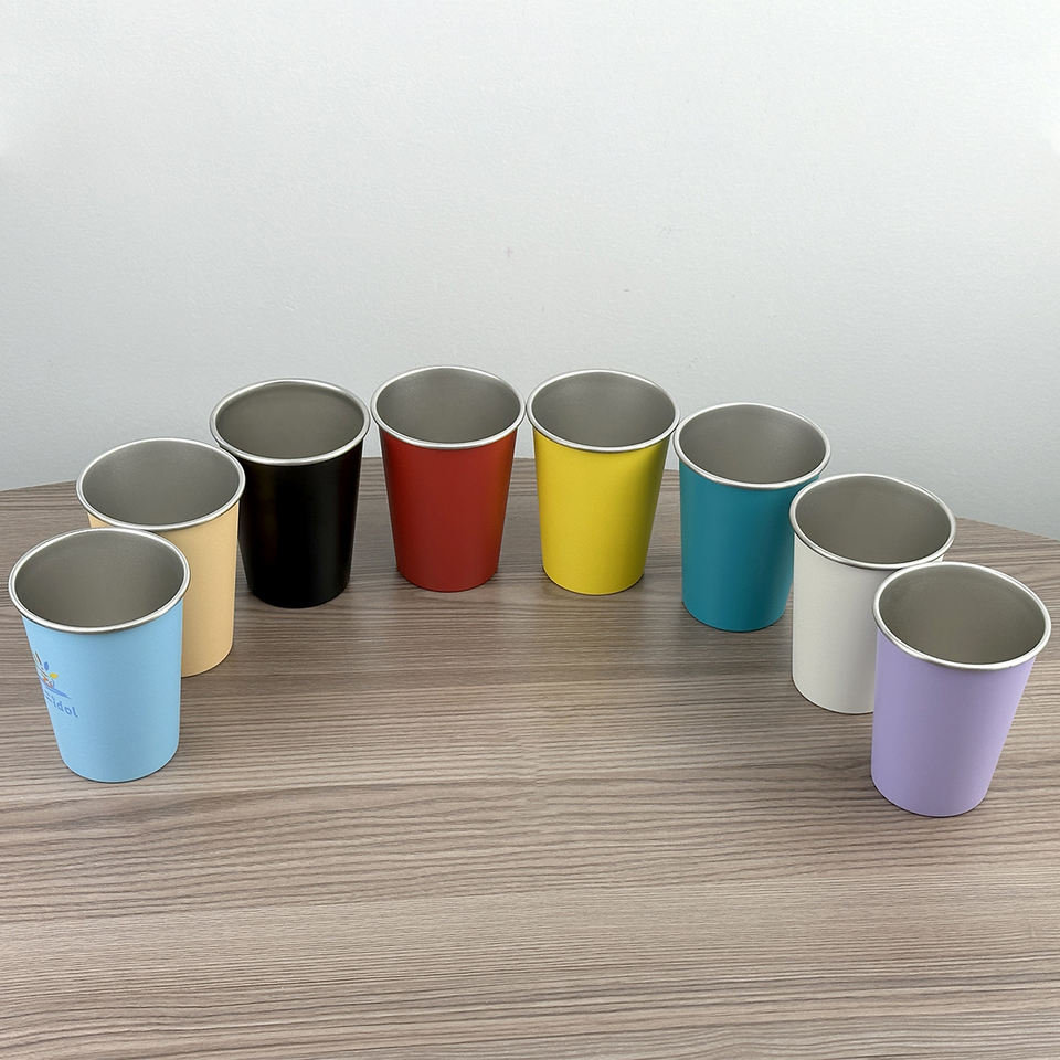 Tasses à bière de camping 350ML 500ML en acier inoxydable empilables, tasse à café avec logo personnalisé, revêtement en poudre, sans BPA, gobelet de voyage en plein air