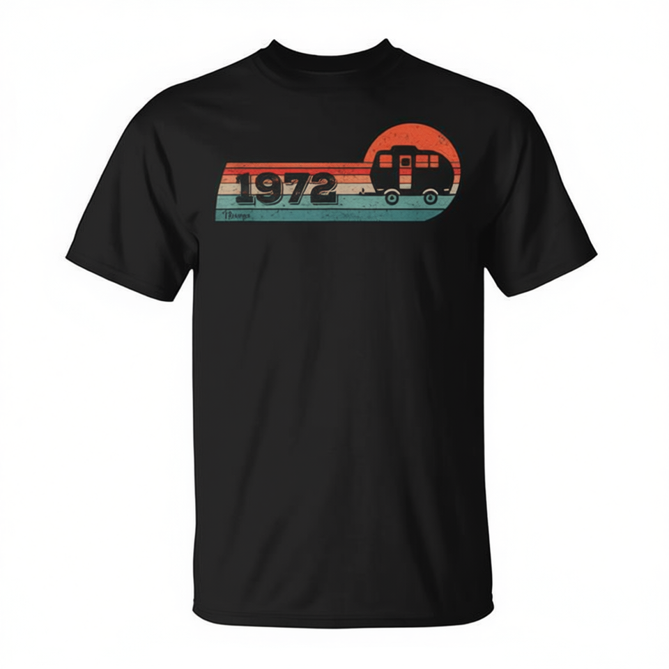 T-shirt de camping-car vintage 1972, caravane, camping-car, pour anniversaire