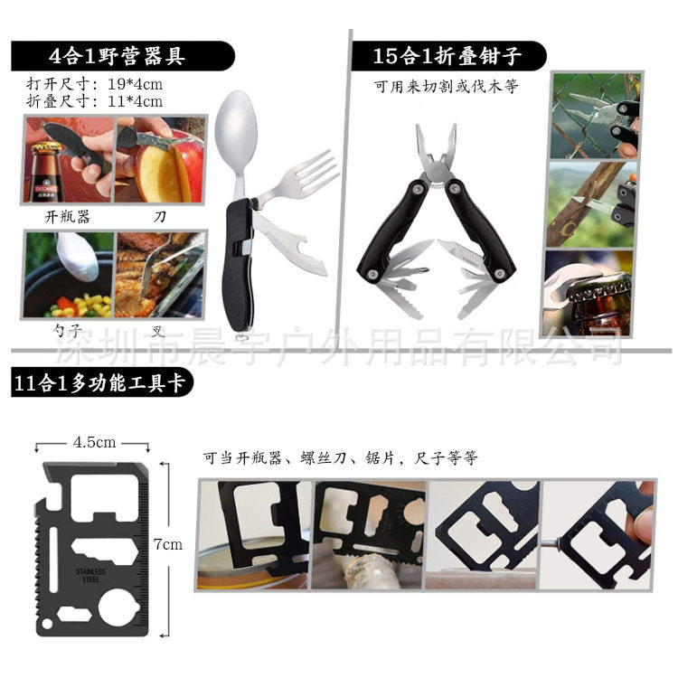 Camping Survival Kit Multi Functional Emergency Gear Home Backpack Tools First Aid Industrial Grade Nylon D-Grip Handle