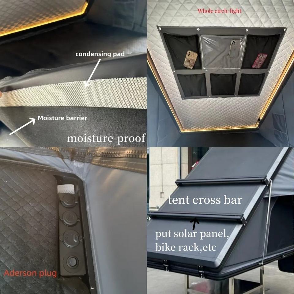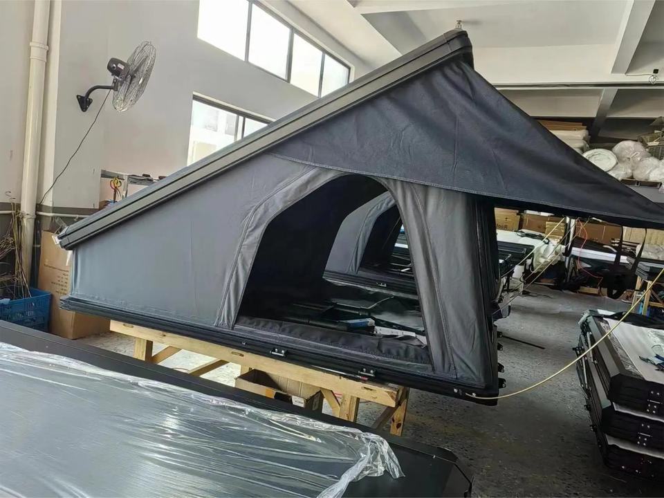 Tente de toit de voiture triangulaire pour le camping, tente rigide à coque noire et grise en aluminium, tente de toit rigide pour 4 personnes, tente de toit en aluminium