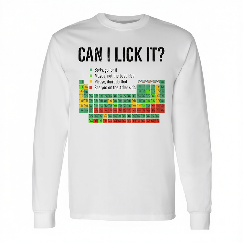 Puis-je le lécher ? T-shirt à manches longues avec tableau périodique des éléments chimiques