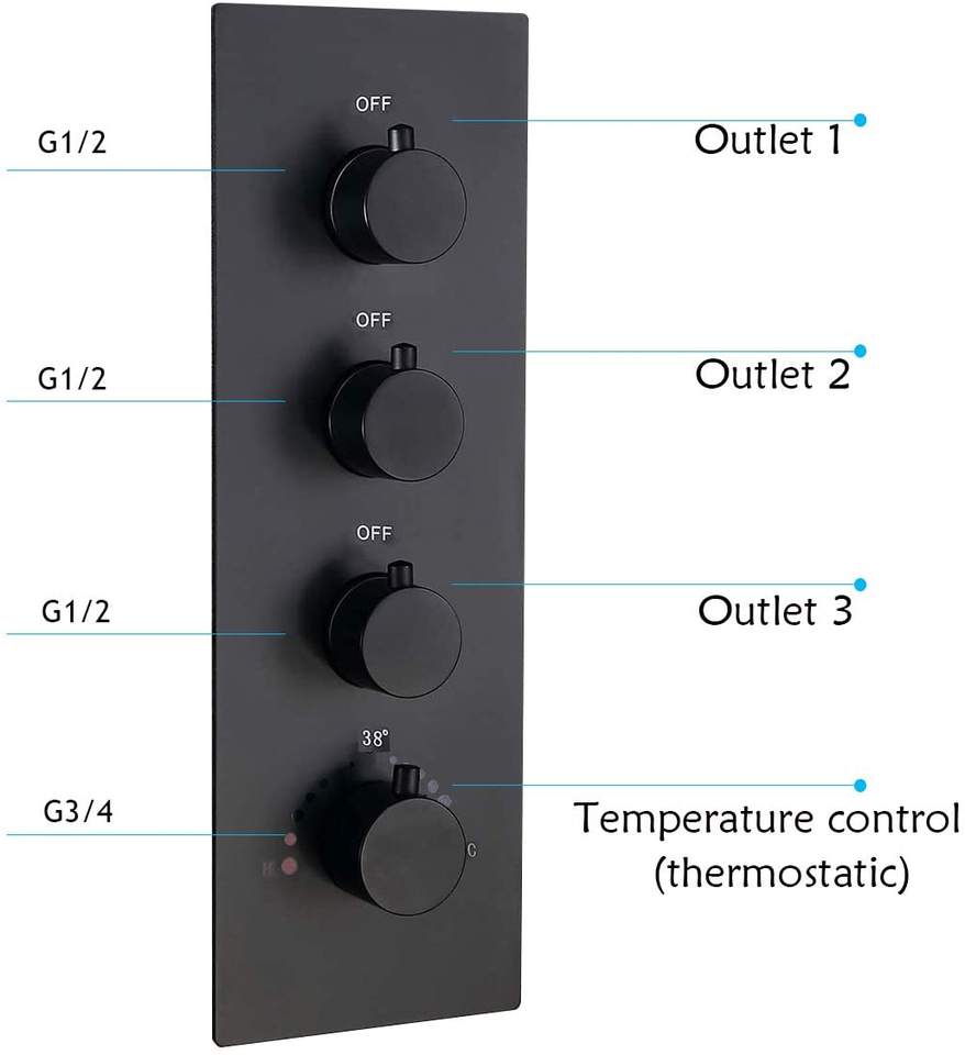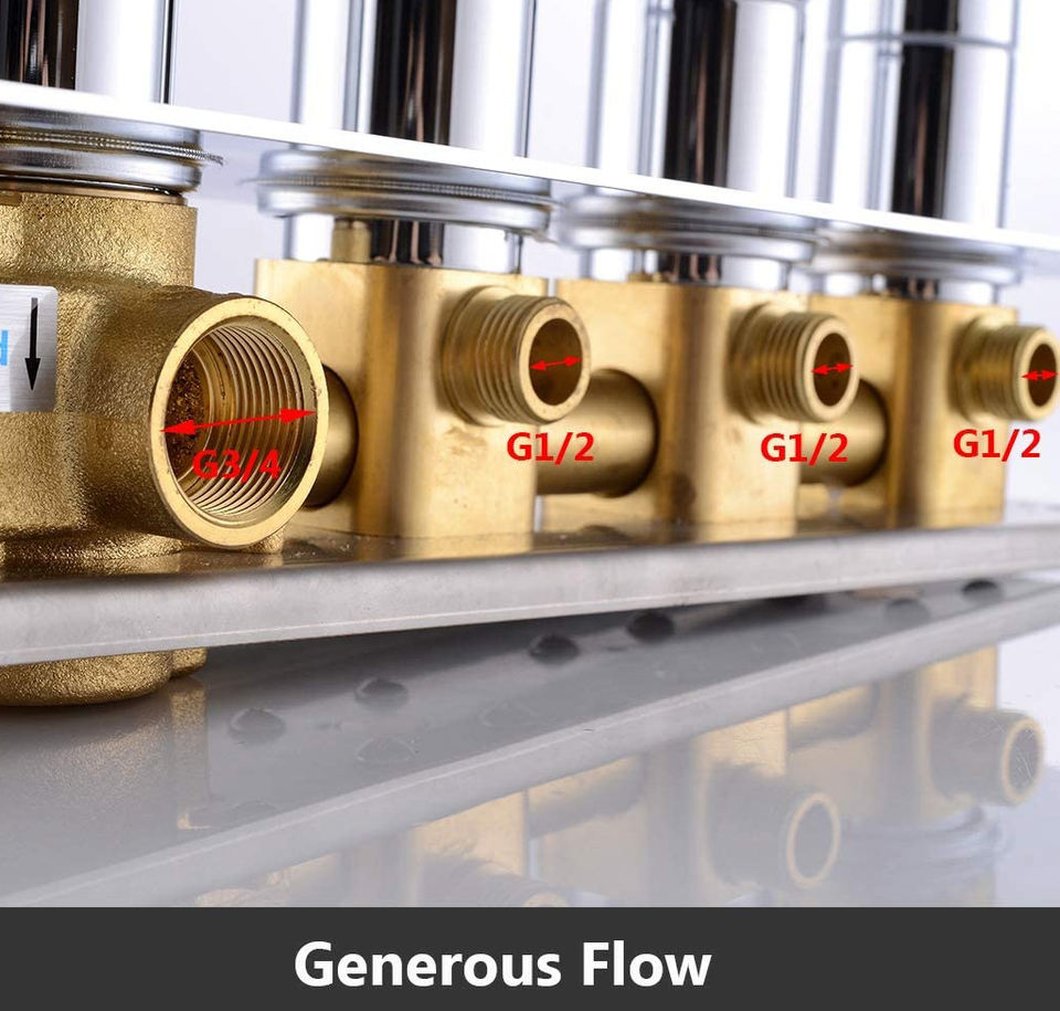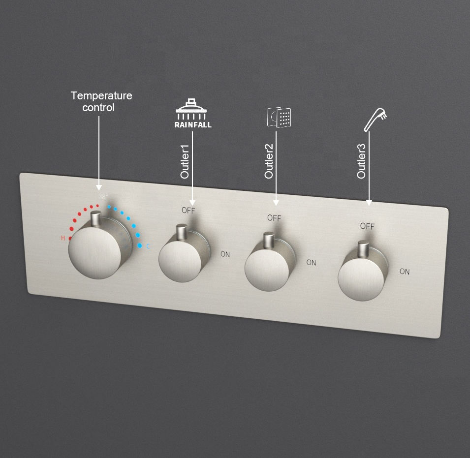 Cartouche de robinet mélangeur thermostatique en laiton pour douche, 3 sorties, à commande simultanée de la pression de l'eau