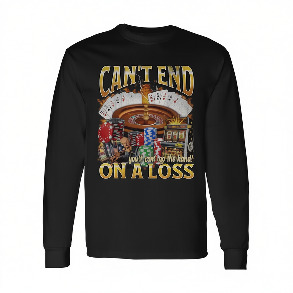 T-shirt à manches longues avec motif 'Can't End on a Loss' style bootleg sur le thème du jeu, et Polo promotionnel