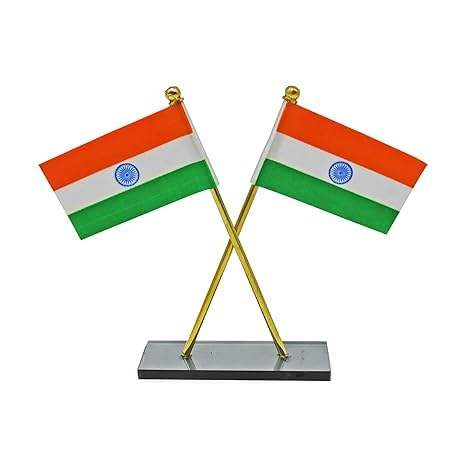Drapeau croisé du drapeau du Canada pour table d'étude de table de bureau de tableau de bord de voiture (tige en laiton)