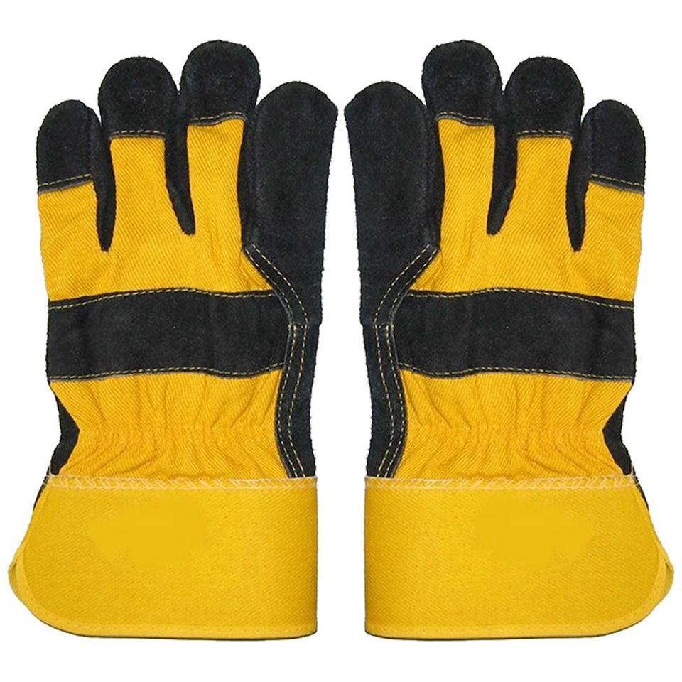 Gréeur canadien XL Gants de travail en cuir de vache fendu Renforcé Double Paume Respirant Matériau en caoutchouc Protection des mains et des bras