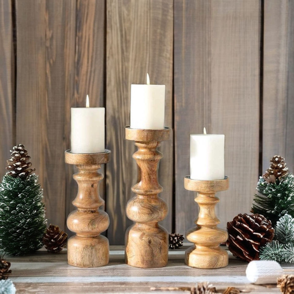 Bougeoir Maison Cuisine Restaurant Hôtel Éclairage Accessoire Organisateur De Table Ensemble De 3 Bougeoirs En Bois En Bois