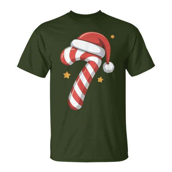 T-shirt de Noël unisexe pour adulte à manches courtes et col rond avec impression numérique motif canne à sucre et chapeau de Père Noël