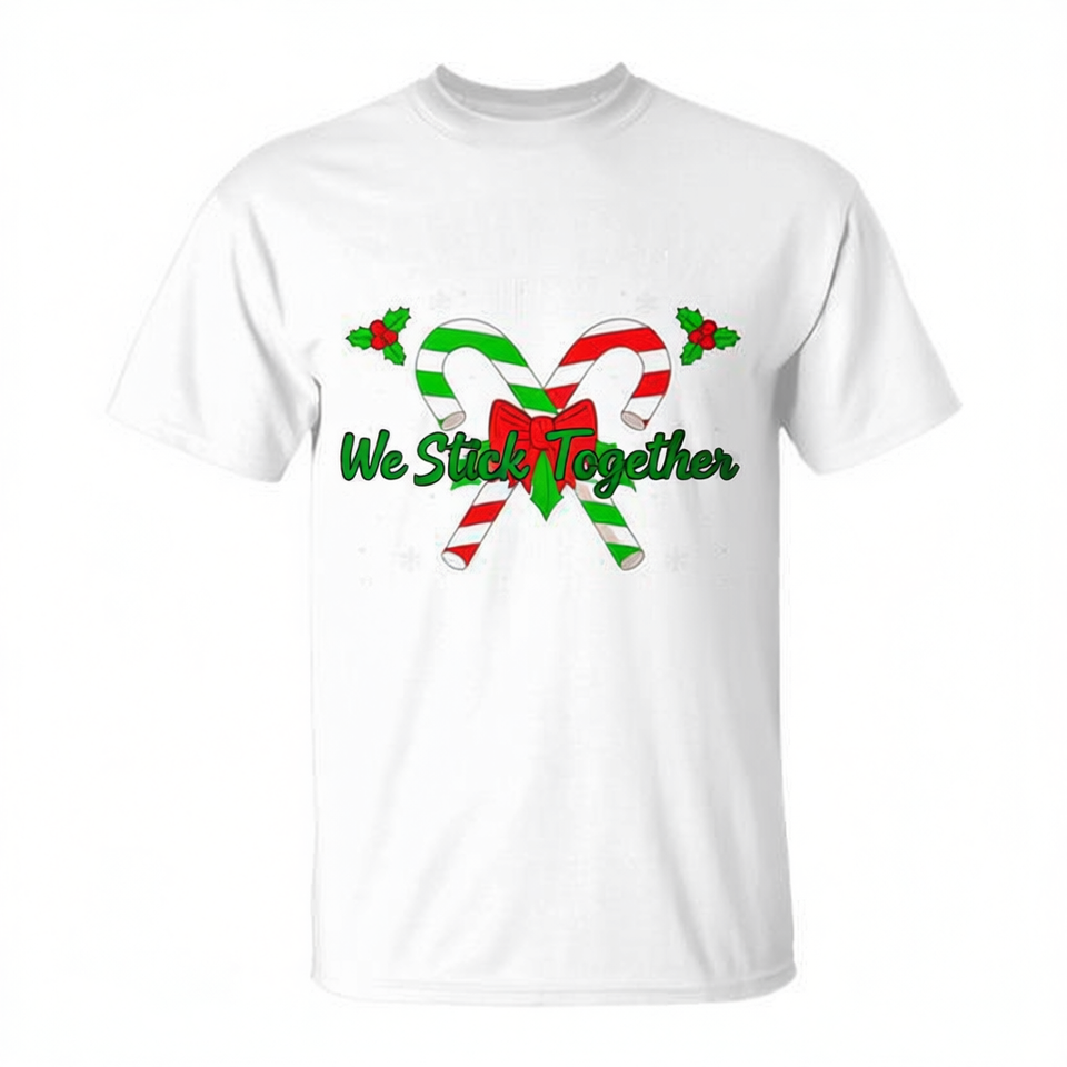 Candy Cane Crew We Stick Together T-shirt de Noël assorti pour couples en tissu mélangé