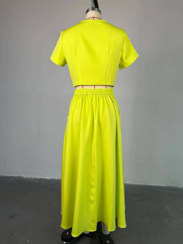 Ensemble de vêtements pour femmes, haut court à manches courtes boutonné de couleur bonbon, jupe en deux pièces, tendance
