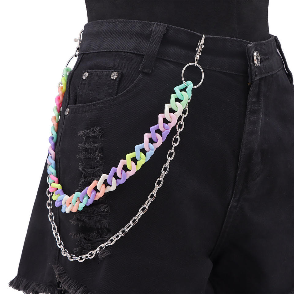 Chaîne de taille en résine double couche couleur bonbon pour pantalon, chaîne de corps tendance pour usage quotidien
