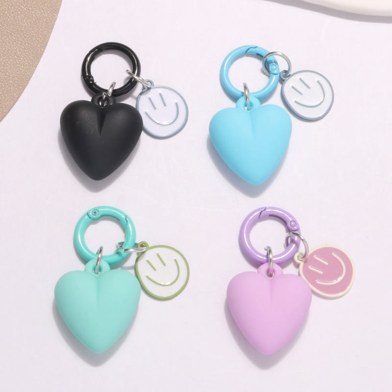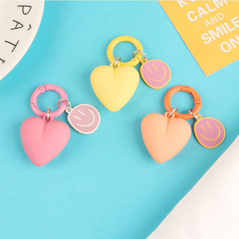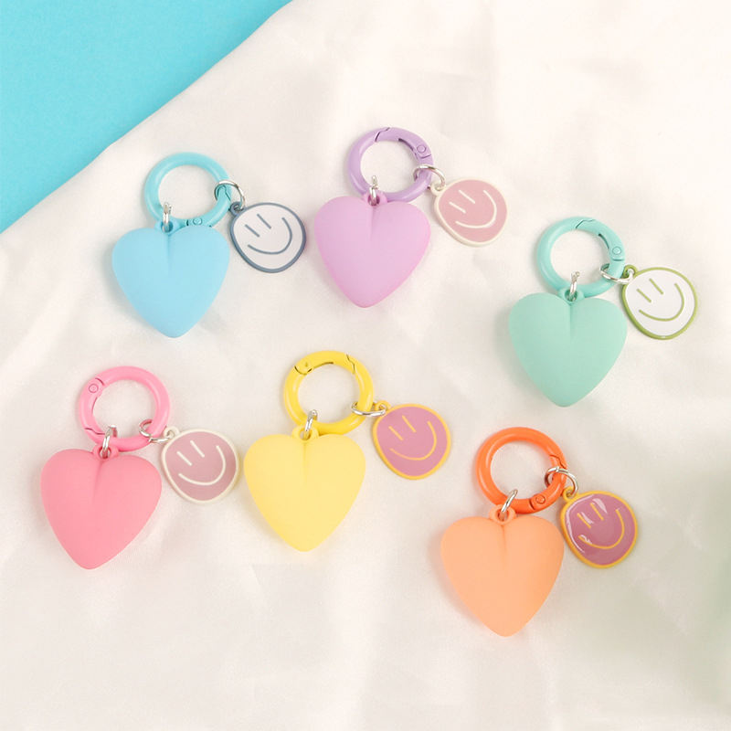 Porte-clés Cœur Émaillé Couleur Bonbon avec Visage Souriant pour Sac Femme