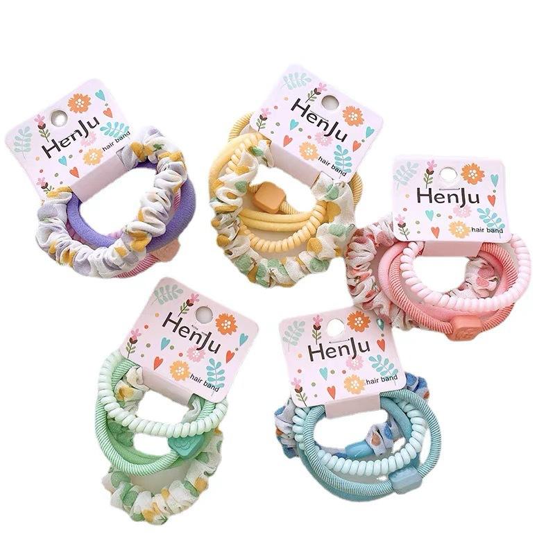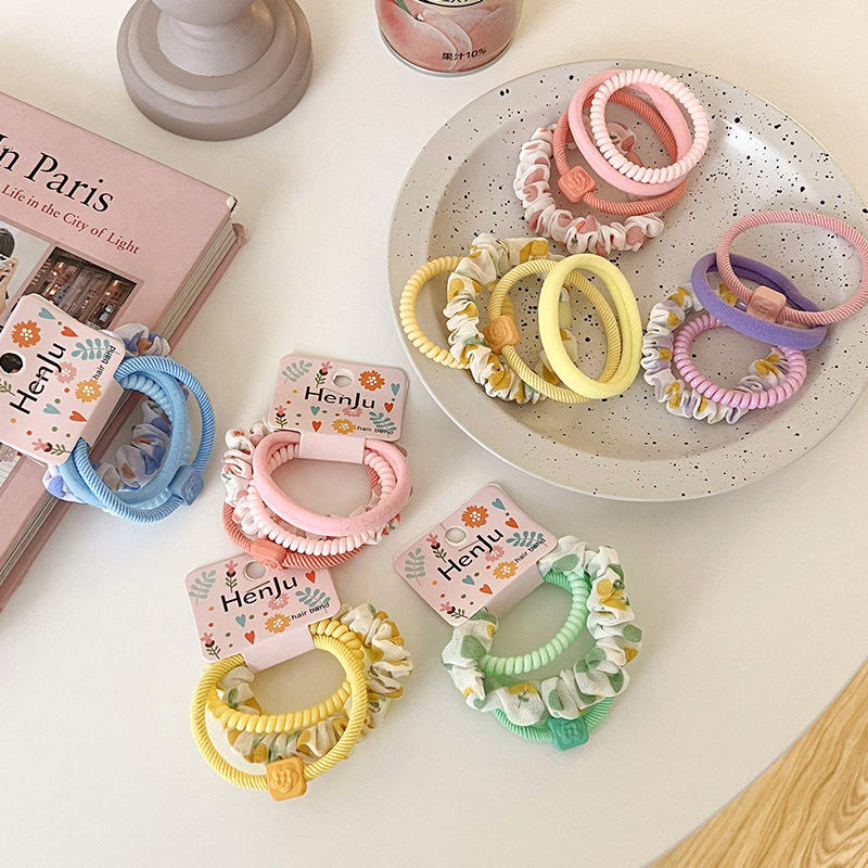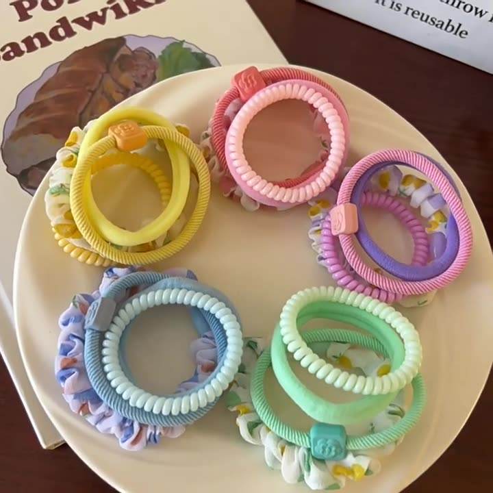 Chouchous élastiques en caoutchouc motif floral couleur bonbon avec cordon pour téléphone, ensemble pour filles et enfants