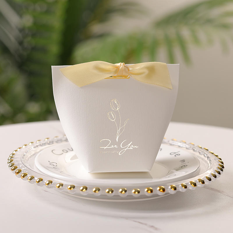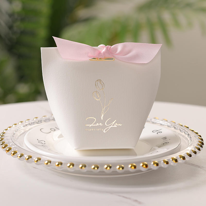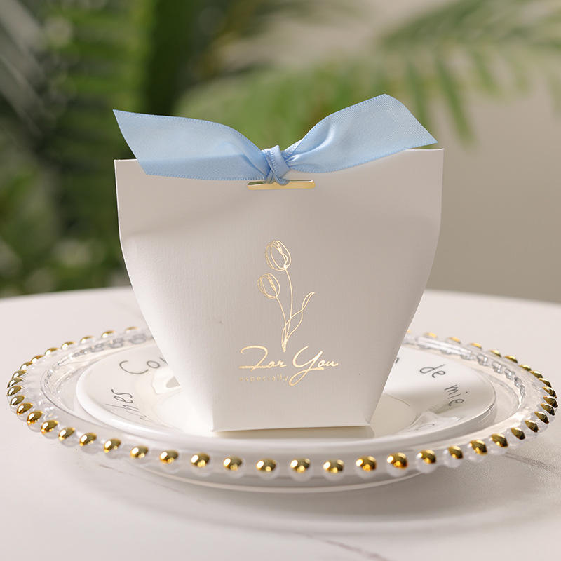 Bonbons dragées Boîtes Ruban Boîte Cadeau pour Baby Shower Baptême Anniversaire Mariage Décoration Chaude Or Estampage logo Boîte En Papier