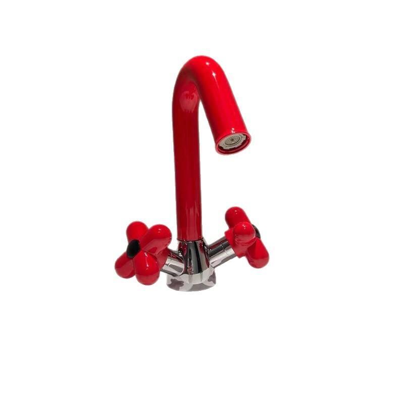 Robinet mélangeur vert bonbon plein cuivre chaud et froid mignon rouge monotrou ouverture en spirale pour salle de bain