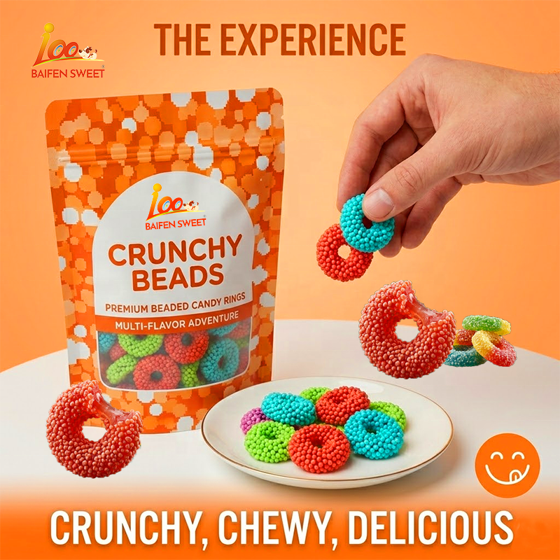 Candy One-Stop OEM/ODM : Formulation professionnelle de bonbons gélifiés croustillants en forme d'anneaux et emballage personnalisé | Approvisionnement d'usine haute capacité