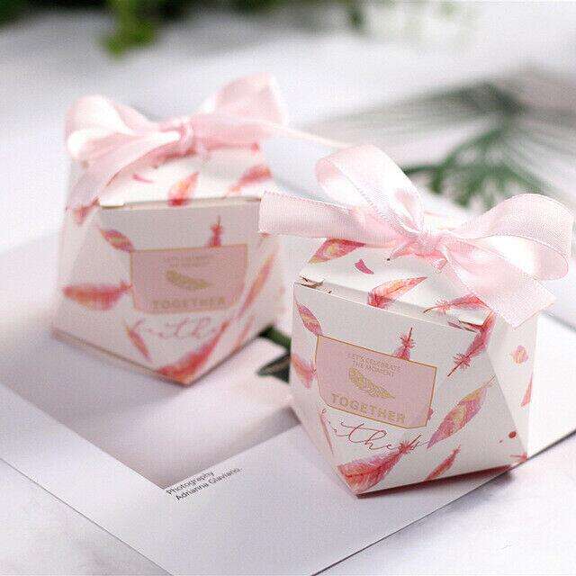 Emballage de bonbons boîte-cadeau losange de fête de mariage avec ruban boîte de fête de communion