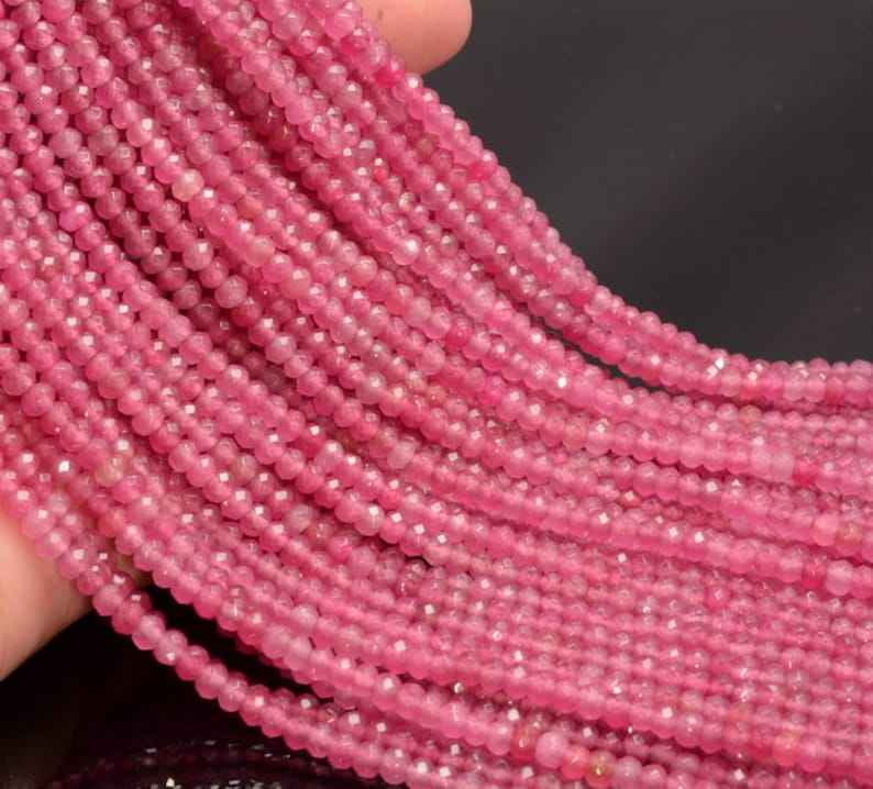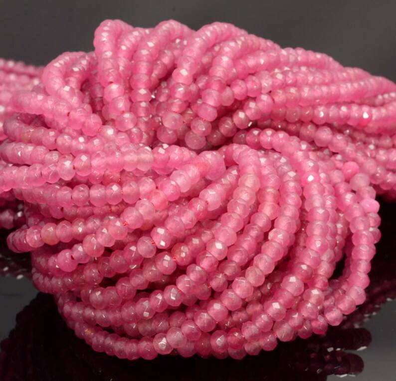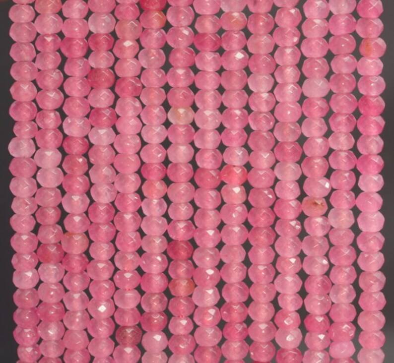 Perles Rondelles Facettées en Jade Rose Bonbon, Pierres Naturelles pour la Fabrication de Bijoux DIY, Bracelets, Colliers, Perles Artisanales