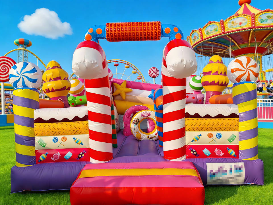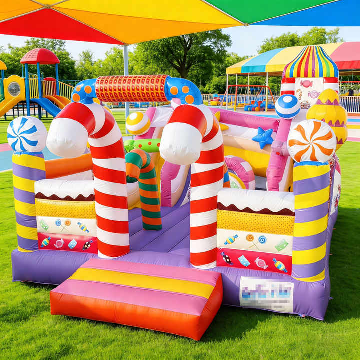 Château gonflable Candy Play Land avec toboggan pour enfants, en PVC, avec souffleur
