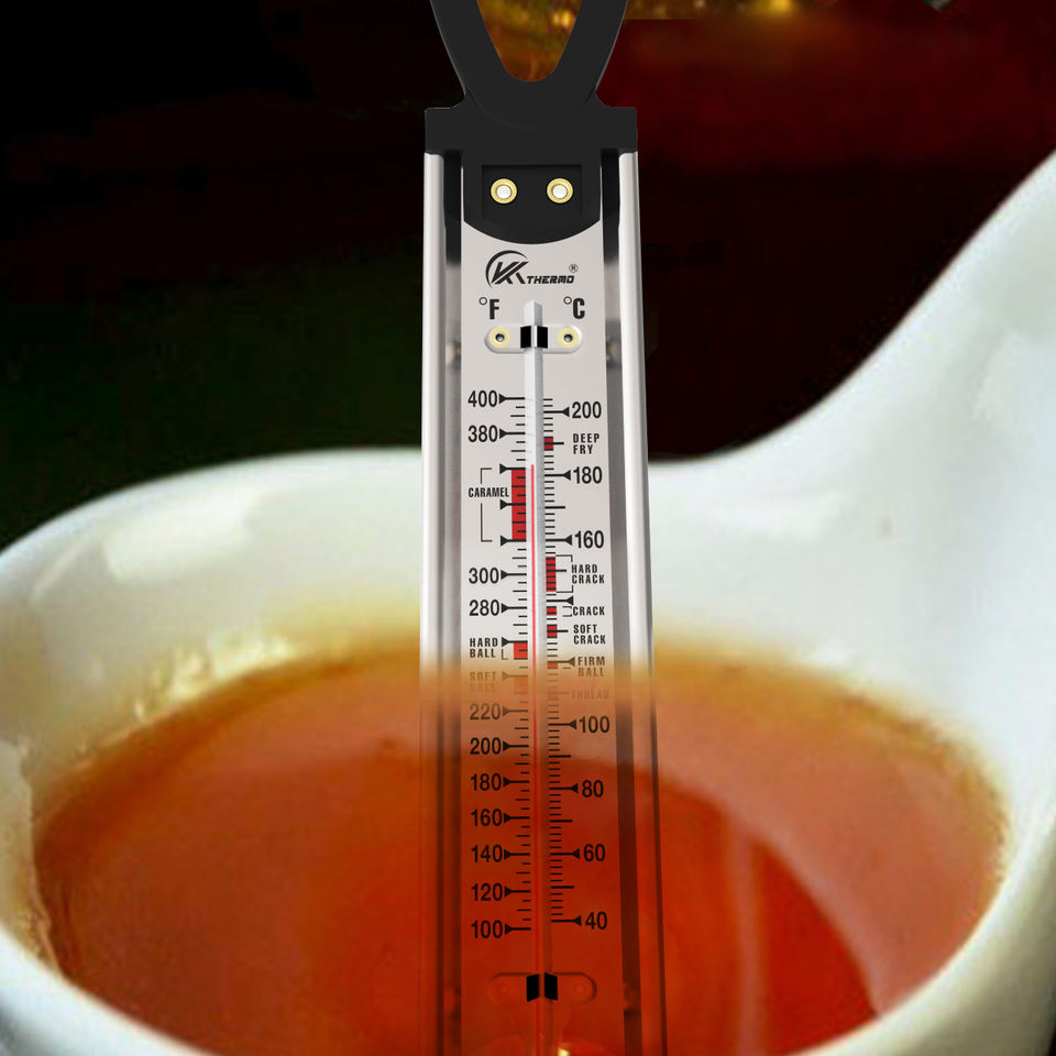 Thermomètre à bonbons avec pince à Pot, thermomètre à huile de gelée de sucre avec crochet de suspension, thermomètre en acier inoxydable