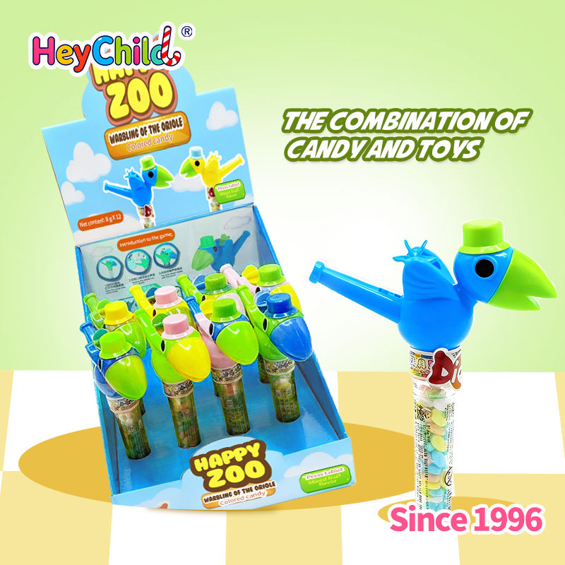 Bonbons en gros, étiquette privée personnalisée, bonbons amusants et joyeux en forme de sifflet d'oriole, jouet en bonbons avec bonbons halal, bonbons et friandises bon marché pour enfants