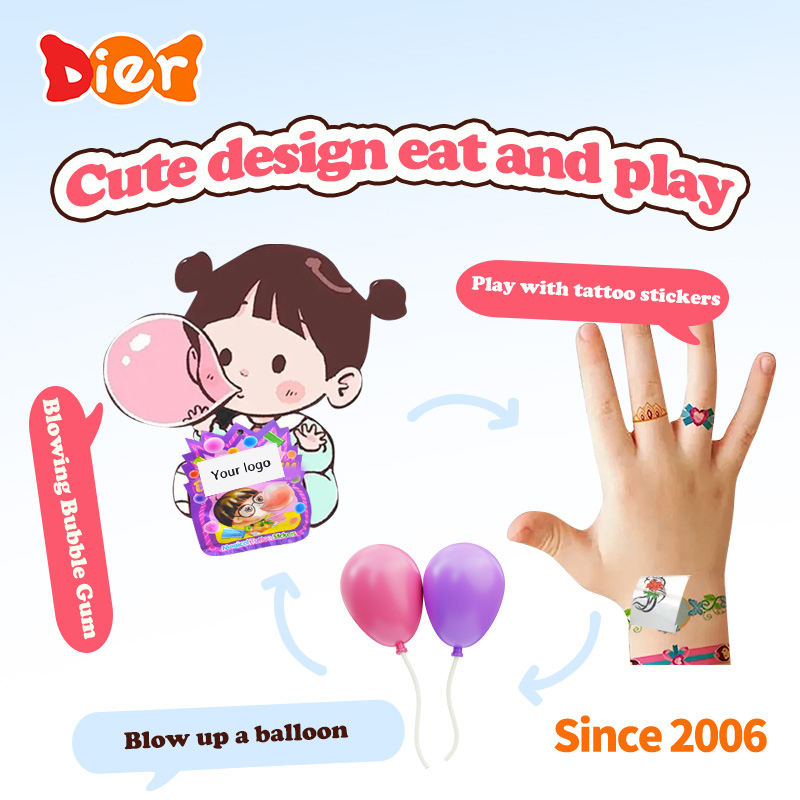 Contenu :Gomme à bulles de fruits et autocollant de tatouage et jouet de ballon C
