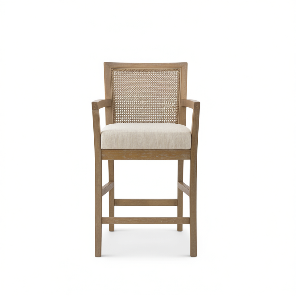 Tabouret de comptoir à dossier en cannage, structure en bois, revêtement en lin, chaise de salle à manger moderne, mobilier de maison