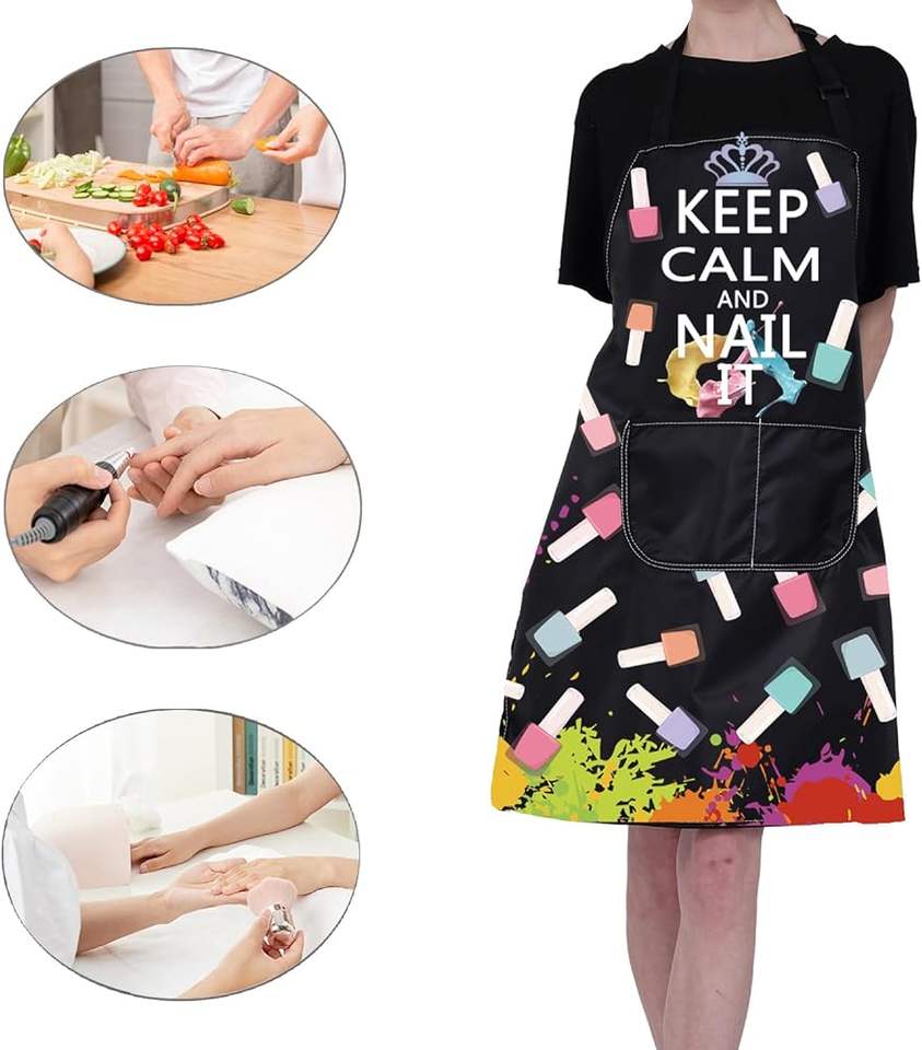 Tablier de salon de manucure personnalisé multicolore avec citation amusante « Keep Clean » pour femmes, enseignantes et techniciennes en ongles, Cangnan Perfect Bags