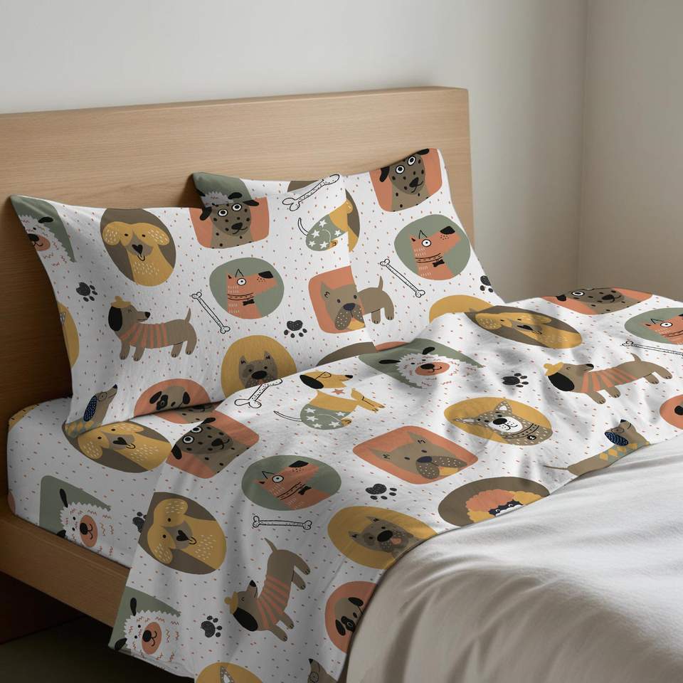 Ensemble de draps de lit italiens Cani 100% coton, motif imprimé chien, taille complète