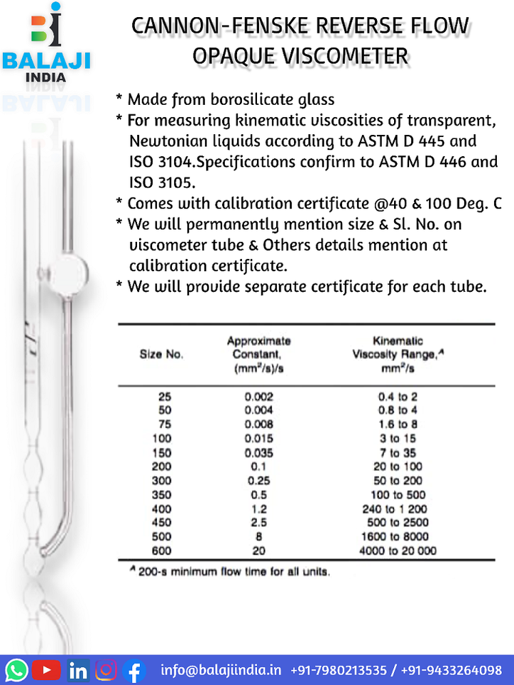 CANNON FENSKE REVERSE FLOW VISCOMETER AS PER ASTM D- 445/446Product name