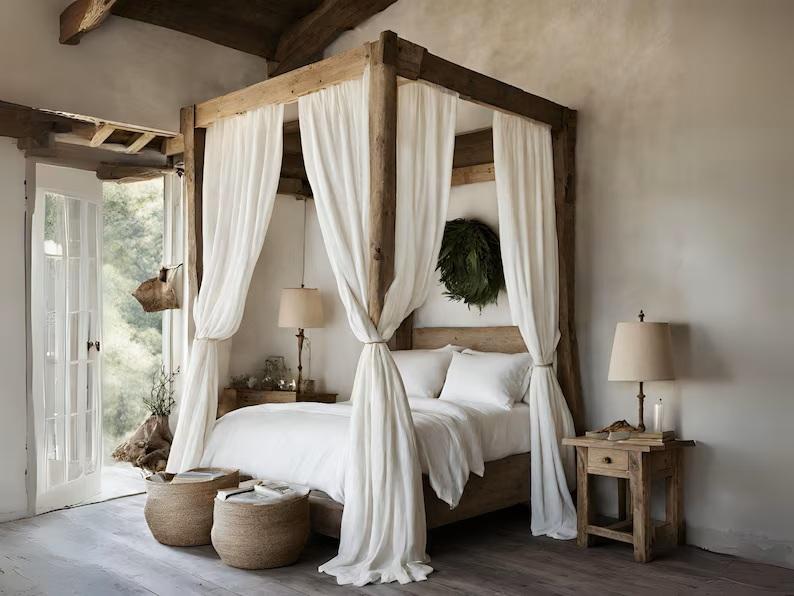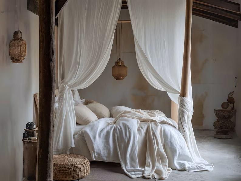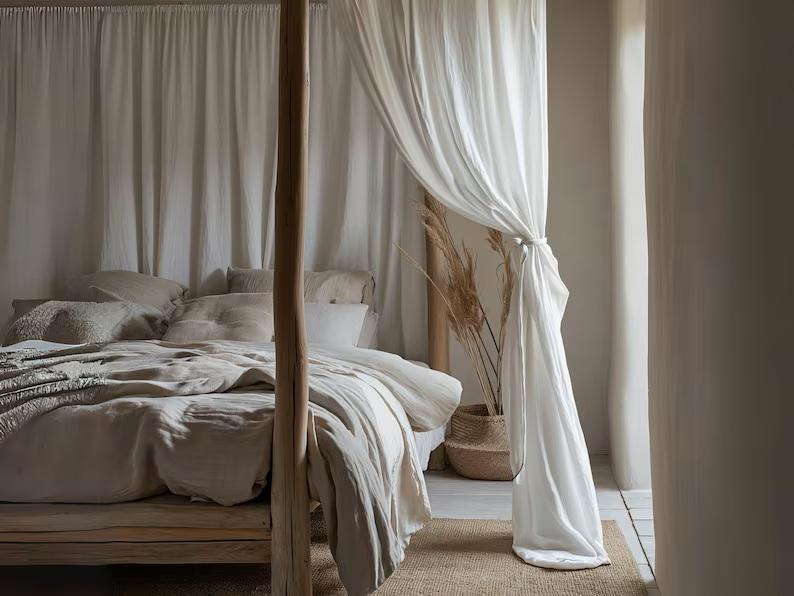 Rideau transparent moderne Boho rideaux de lit à baldaquin en lin blanc avec accessoires de traitement inclus draperie en lin à nouer