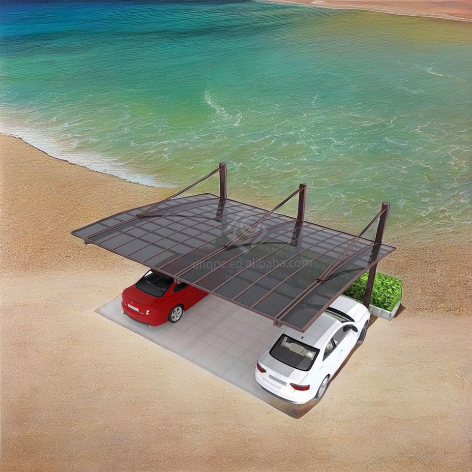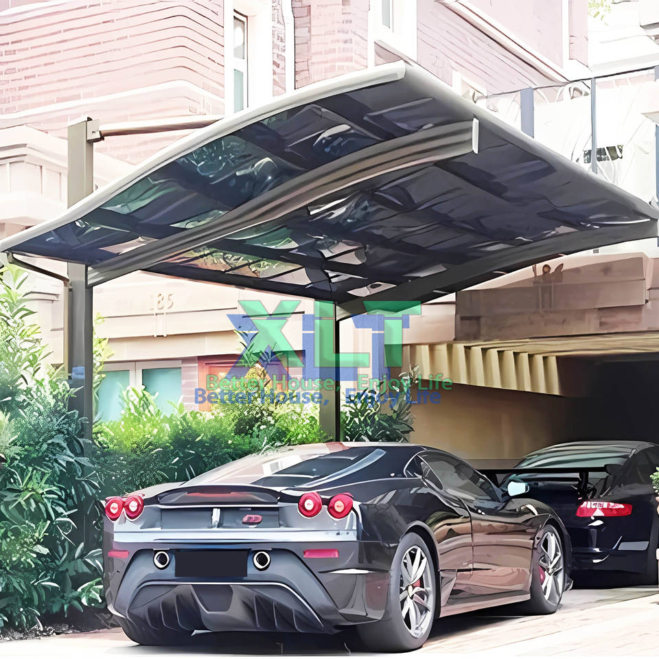 Système de garages en porte-à-faux avec poteaux, poutres de support et auvent en métal pour toit arqué pour le stationnement