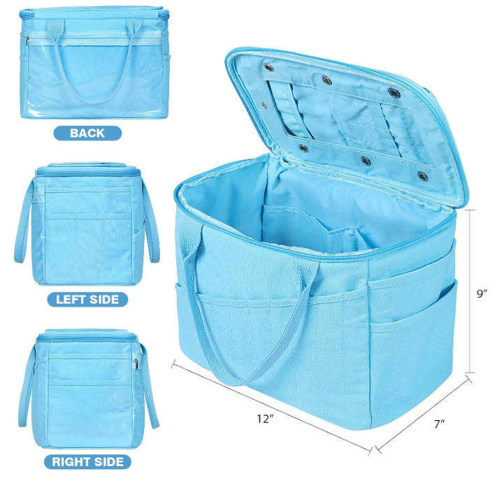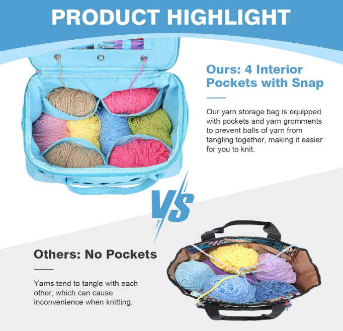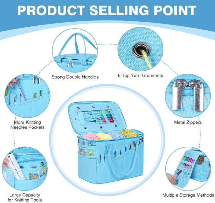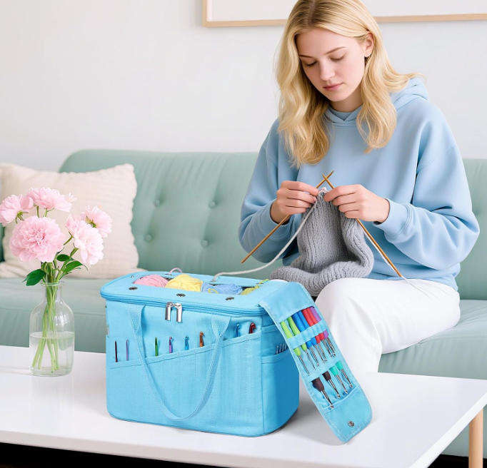 Sac de rangement en toile tricoté au crochet, idéal pour fournitures de tricot, sac fourre-tout organisateur portable pour pelotes de laine et outils