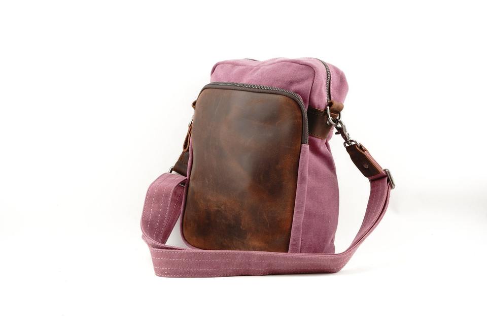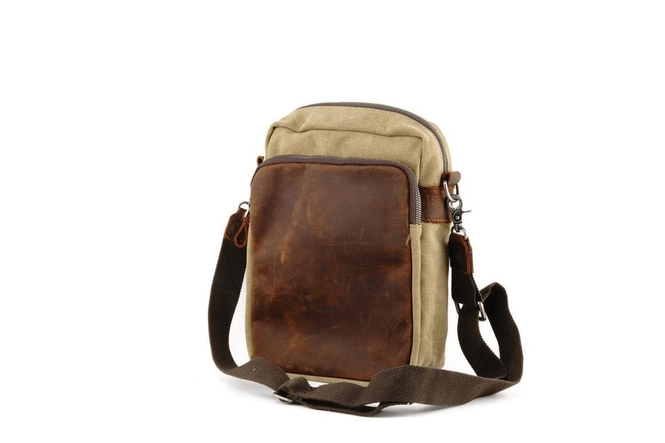 Sac à bandoulière en toile avec empiècement en cuir 3 compartiments et 3 compartiments intérieurs LCSB-0033B