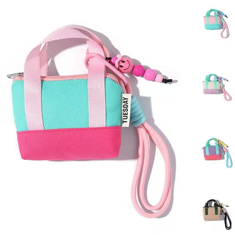 Mini sac d'écouteur de porte-clés en toile avec boîte de rangement de câble de données-Design mignon